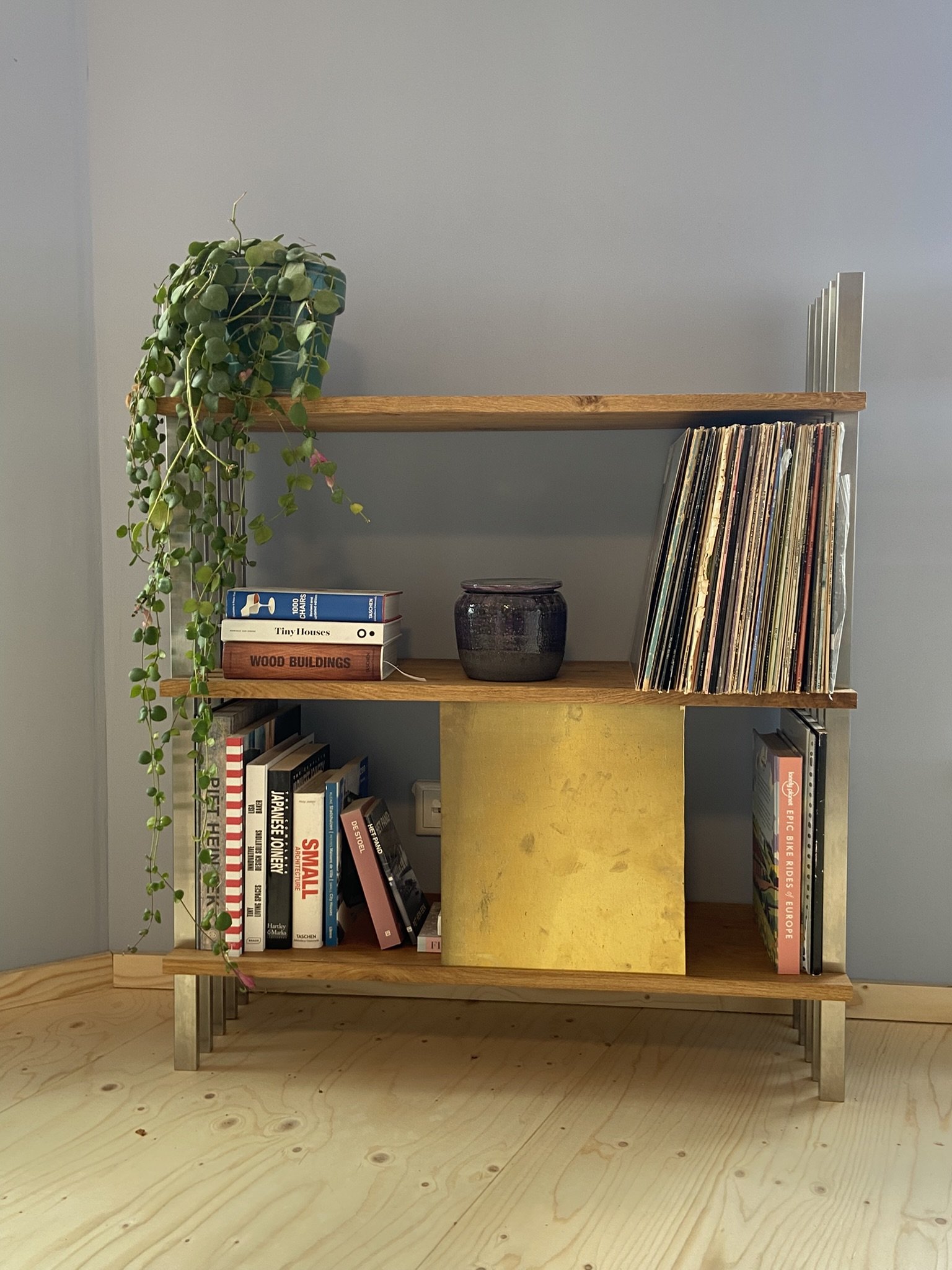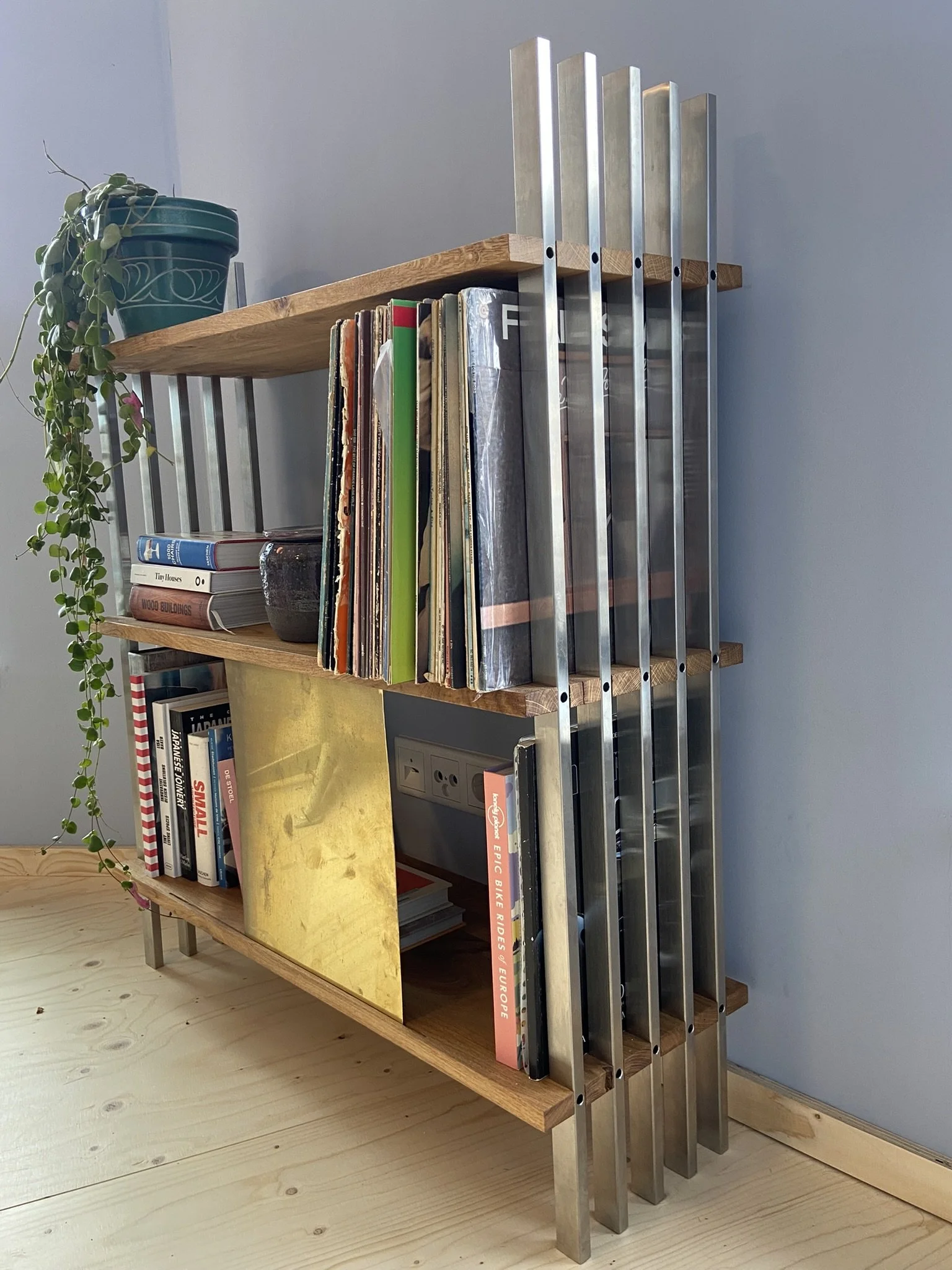 Dankzij het modulaire systeem zijn de verhoudingen subtiel en functioneel: ideaal voor boeken, objecten, planten of servies. De combinatie van staal en hout geeft het meubel een technische elegantie, waardoor het zowel in woon- als werkomgevingen moeiteloos past.